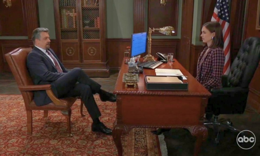 Meanwhile, Ric visited Alexis at her law office and pressed her for her honest take on Ethan. Alexis defended him strongly and recounted Ethan’s complicated history with Kristina and her abusive ex Kiefer. She called him fiercely loyal. Ric remained skeptical but Alexis turned it around on him. She told him his real problem was never believing he was good enough. Ric admitted she still knew him better than anyone.