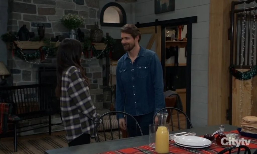 Molly and Cody shared a playful morning after their night together. Things became awkward when Felicia arrived with James for his riding lesson. James questioned why Molly wore Cody’s shirt, and both scrambled to offer light excuses.