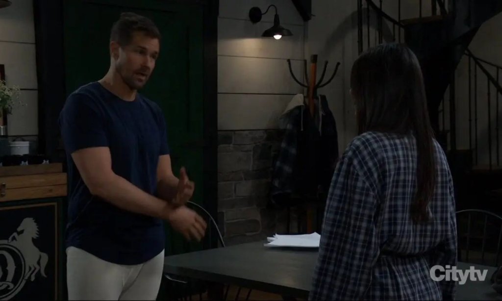 Carly tried to keep things calm at home as the storm worsened. She urged Valentin to stay in her guest room since the roads were unsafe. The plan seemed simple until Brennan unexpectedly appeared at her door. His sudden arrival created pressure that neither Carly nor Valentin expected.