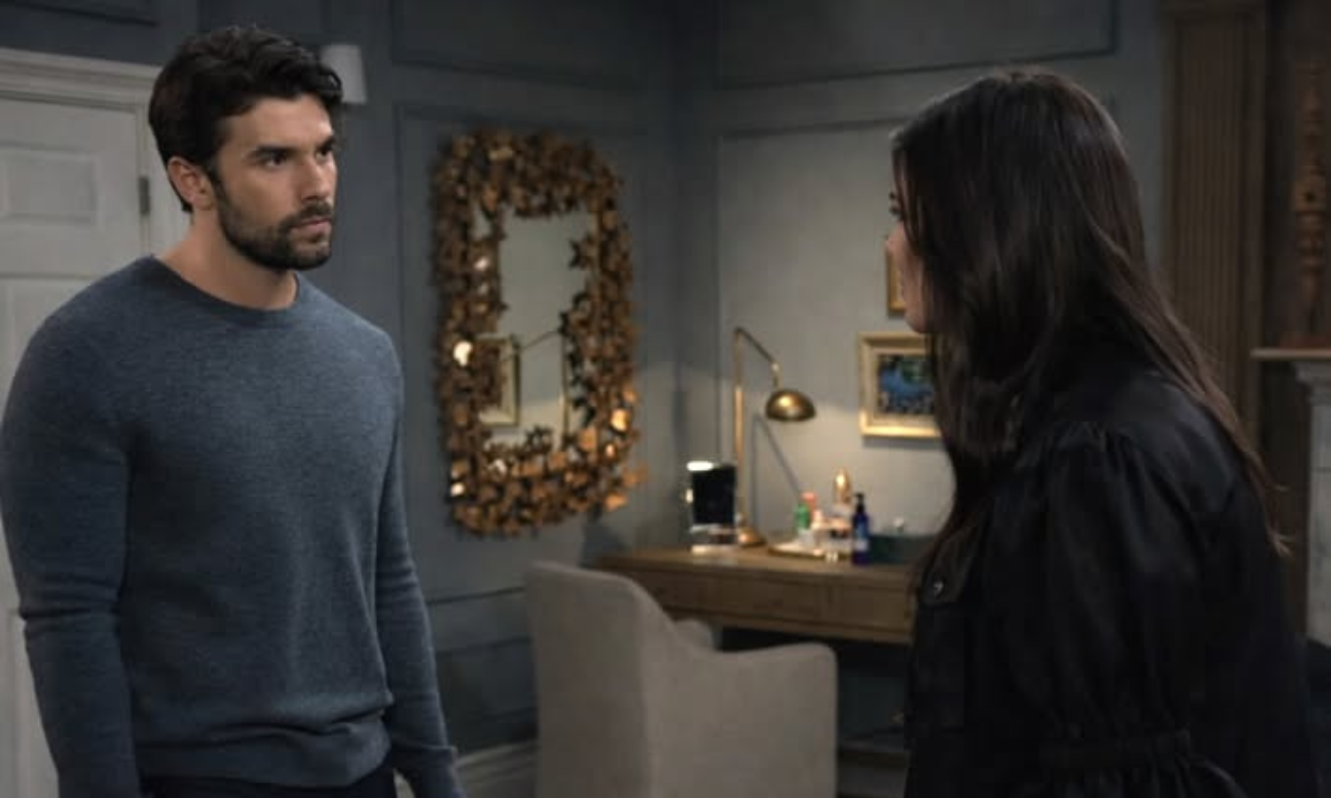 Carly Spencer searches Wyndemere for hidden answers. She discovers the wine cellar passageway. The secret confirms her suspicions. While lurking nearby, Carly overhears a tense conversation. The discussion shocks her deeply. Sidwell and Ross Cullum may stand at the center.