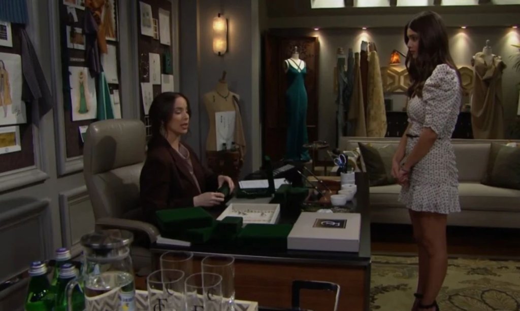 Steffy steps in for Ivy on a business trip, and the energy shifts immediately. She tries to keep Electra focused on the jewelry presentation, but drama follows them. The tension grows once the beach house scenes begin unfolding back home.