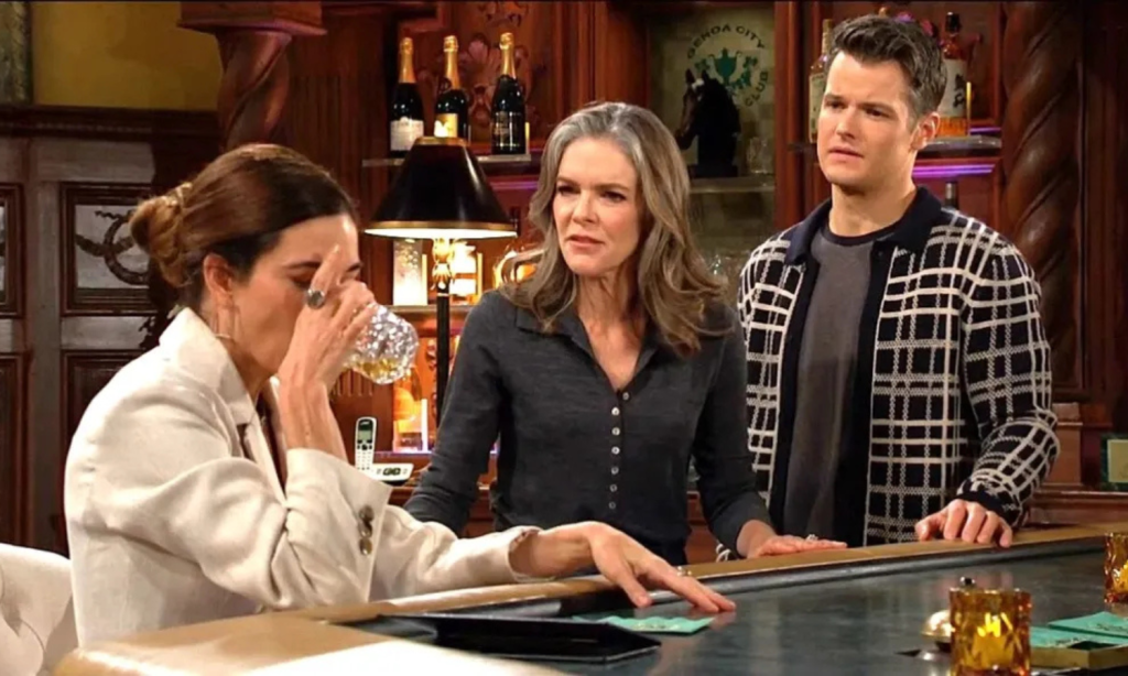 Over at the GCAC bar, Kyle confronted Victoria about Jack’s kidnapping and Patty’s involvement. Victoria listened, conceded that Victor’s methods could be extreme, but ultimately defended her father anyway. She even suggested Patty may have acted on her own. Kyle pushed back hard. Then Diane arrived and the exchange turned fiery.