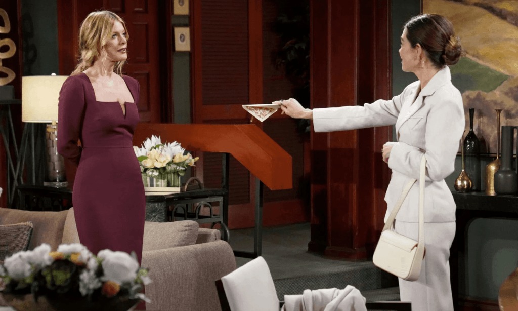 Victoria strutted into Phyllis’ office with a lethal weapon in her purse. She spotted the massive self-portrait Phyllis recently mounted on the wall. The two rivals sparred with sharp words and bitter history. Then Victoria dropped the ultimate bombshell on the table. She handed over a letter from Summer in Milan.